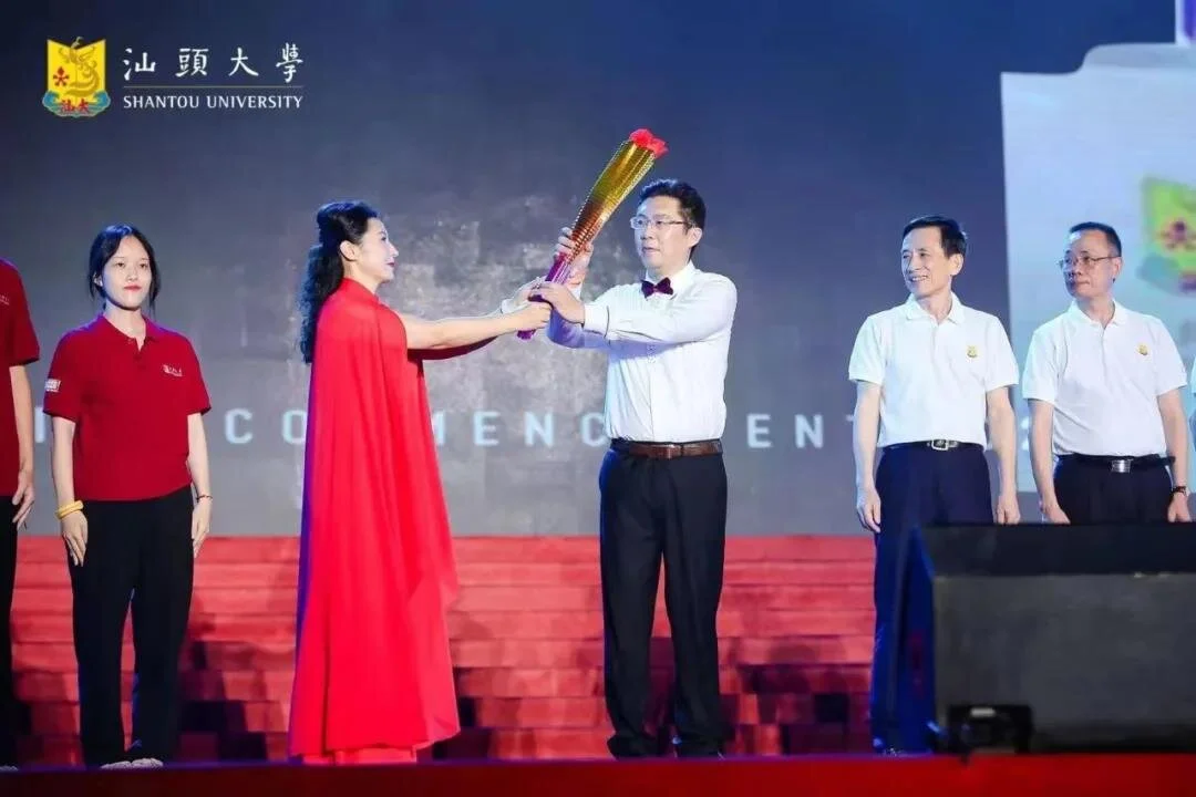 7月3日晚,在汕大2021年毕业典礼暨40周年庆火炬传递环节,一个曲面渐变风格的火炬吸引了全场目光的注视。这个火炬从校领导、校友代表、毕业生代表的手中一次次传递,既代表着汕大前辈对年轻一代的殷殷期盼和谆谆嘱托,也象征着“建立自我、追求无我”的汕大精神必将薪火相传。