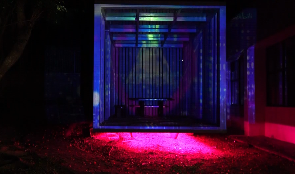 夜幕降临,周遭隐去,跳舞的光线让它变得灵动鲜活、流光溢彩、如梦似幻。投影光束的舞蹈,充斥着欢愉与激情,与作品底部的玫红色光共同再现了精彩的阿姆斯特丹之夜。