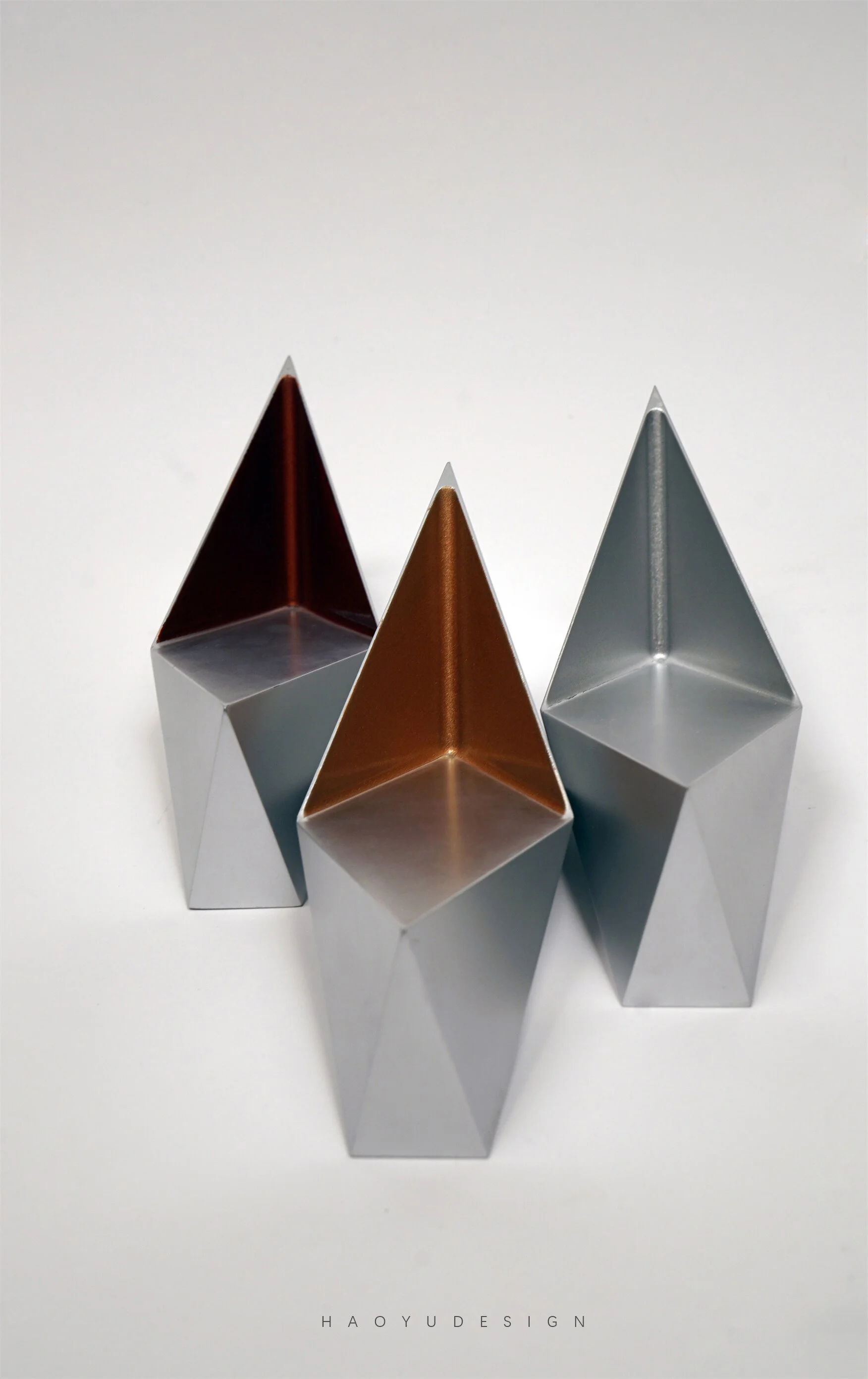 顶面三角和底面三角采用黄金比例62:100的方式设计,使奖杯呈现和谐的样式和光影。
