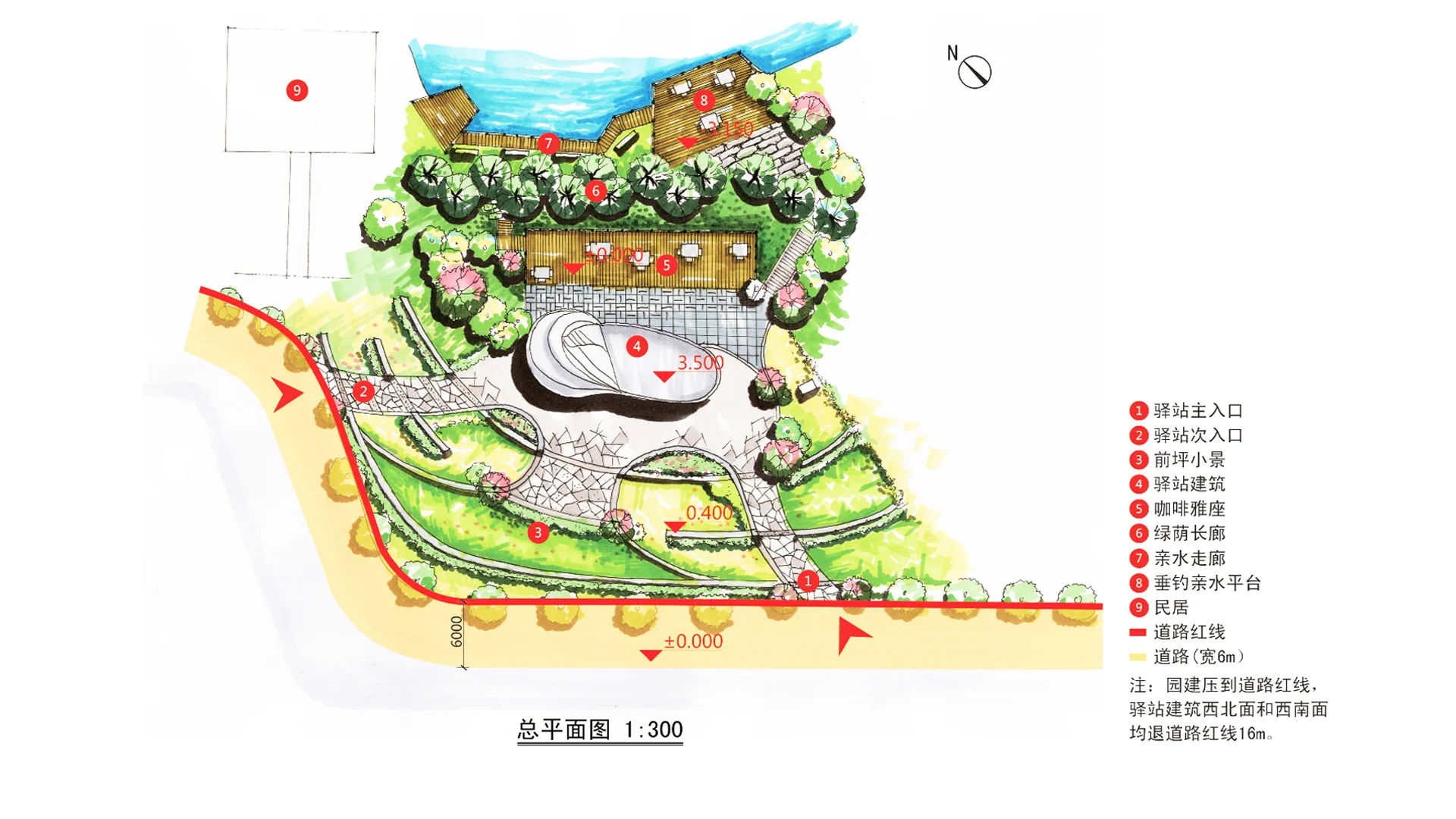 这是一个汕头市城市项目,基地情况背靠千公顷湿地,正面朝向汕头内海湾,设计要求制作一个供游客休息的驿站,须有登高观景和识别标志的功能。为了完成这一地标,我们提供了两个方案,其中第二个方案得到市长和评审委员会的青睐。原因有二:1.楼梯台阶自然连接草地,体现和谐于自然;2. 大型玻璃墙的设计使建筑整体通透轻巧利于远眺。